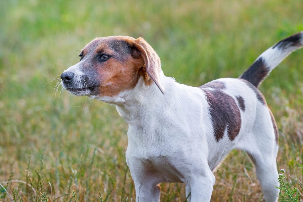 - Описание: Среднего размера охотничья собака с плотной шерстью и выразительным окрасом.