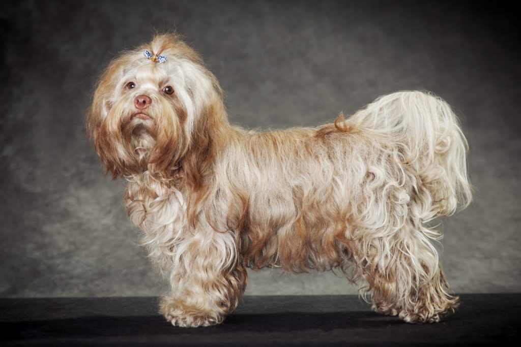 - Описание: Маленькая собака с мягкой, волнистой шерстью разнообразных окрасов.