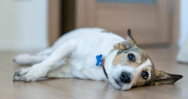 - Живот вздут, болезненный, собака тяжело дышит