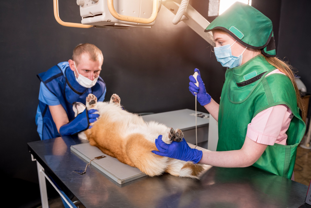 • Физикальный осмотр — пальпация живота, оценка состояния животного
