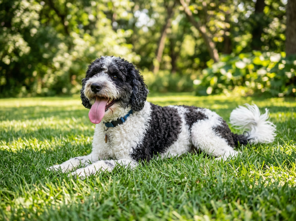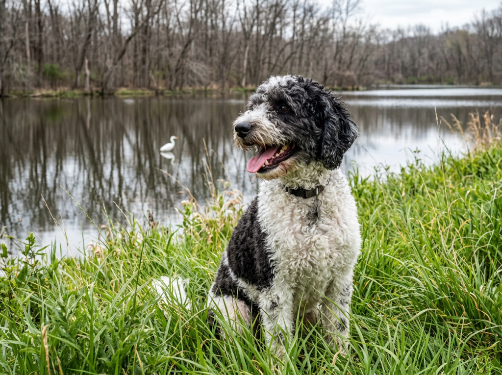 Главная особенность породы — густая кудрявая шерсть, которая защищает собаку от холода и влаги.