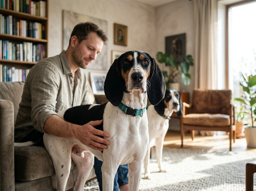 Бернская гончая формирует привязанность к владельцу и хорошо взаимодействует с человеком.