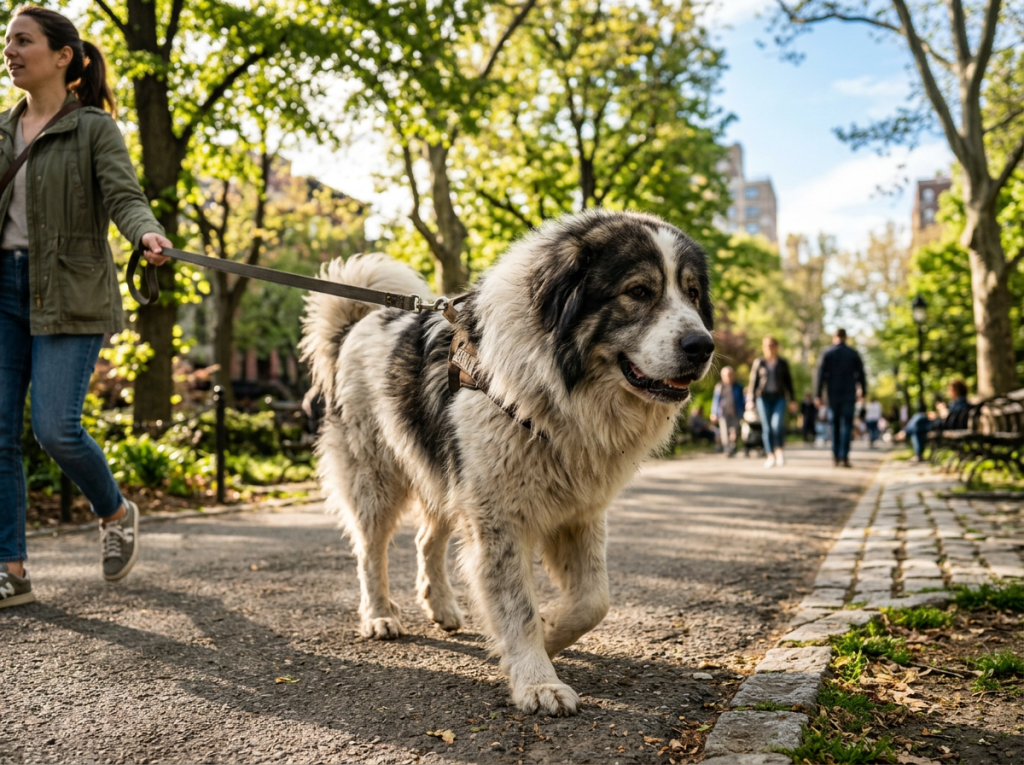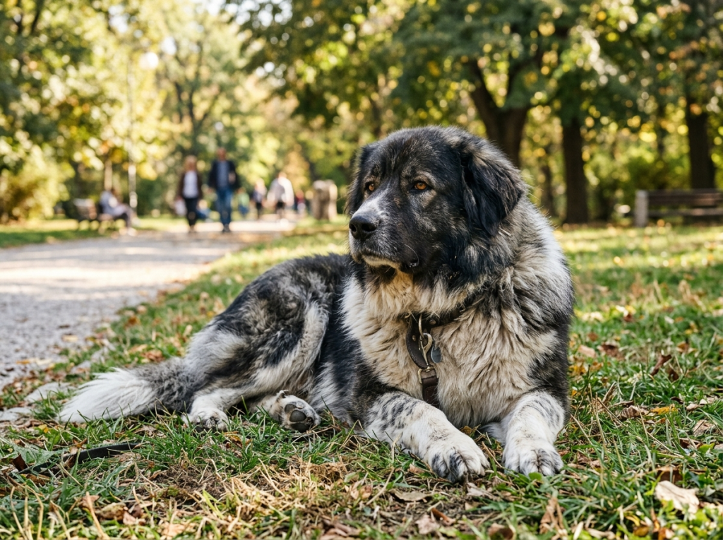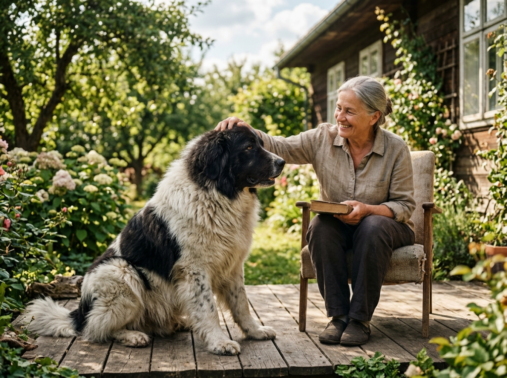 Каракачанская собака известна своими сторожевыми способностями. Она внимательно следит за территорией и готова защищать владельца.