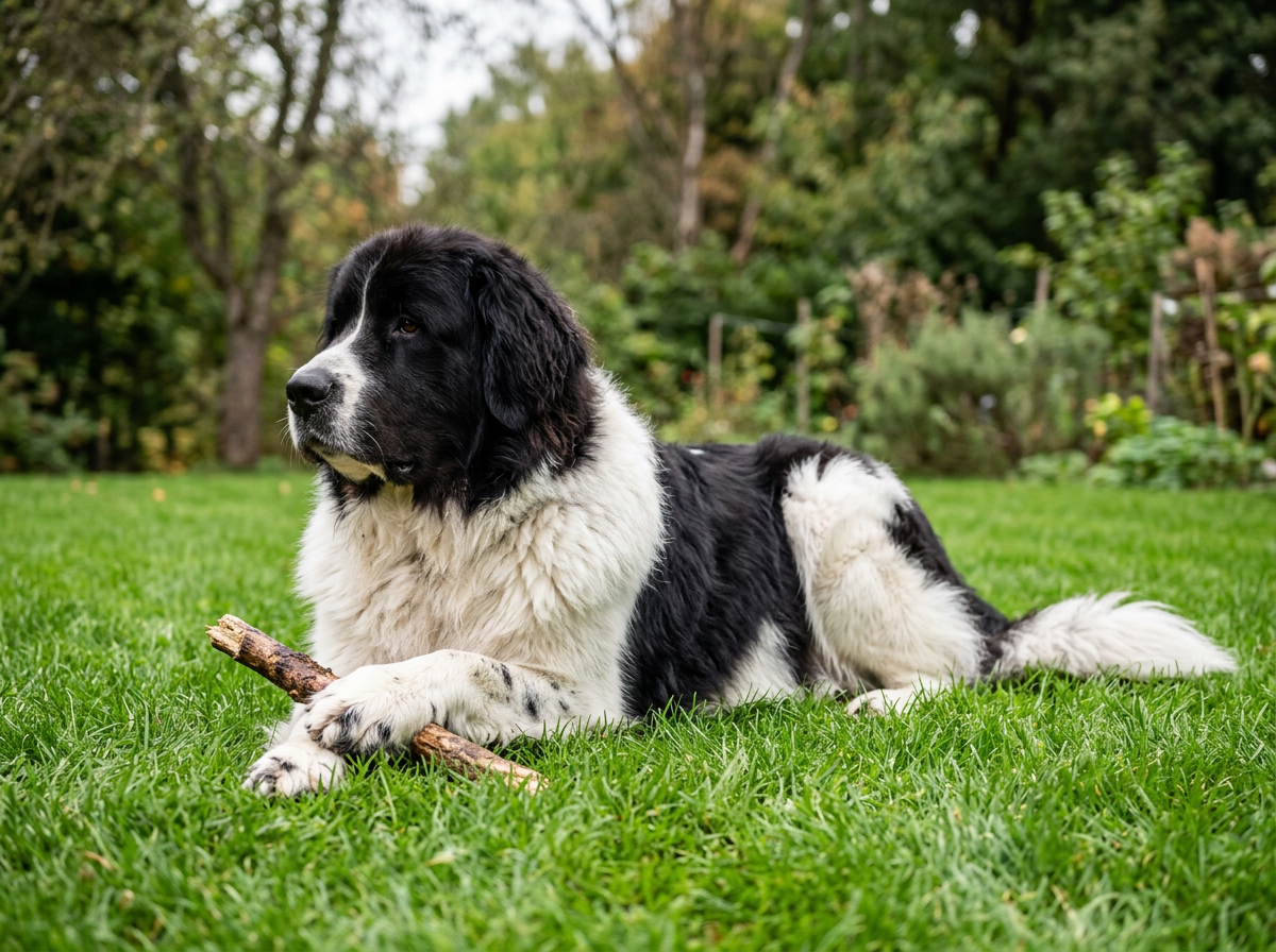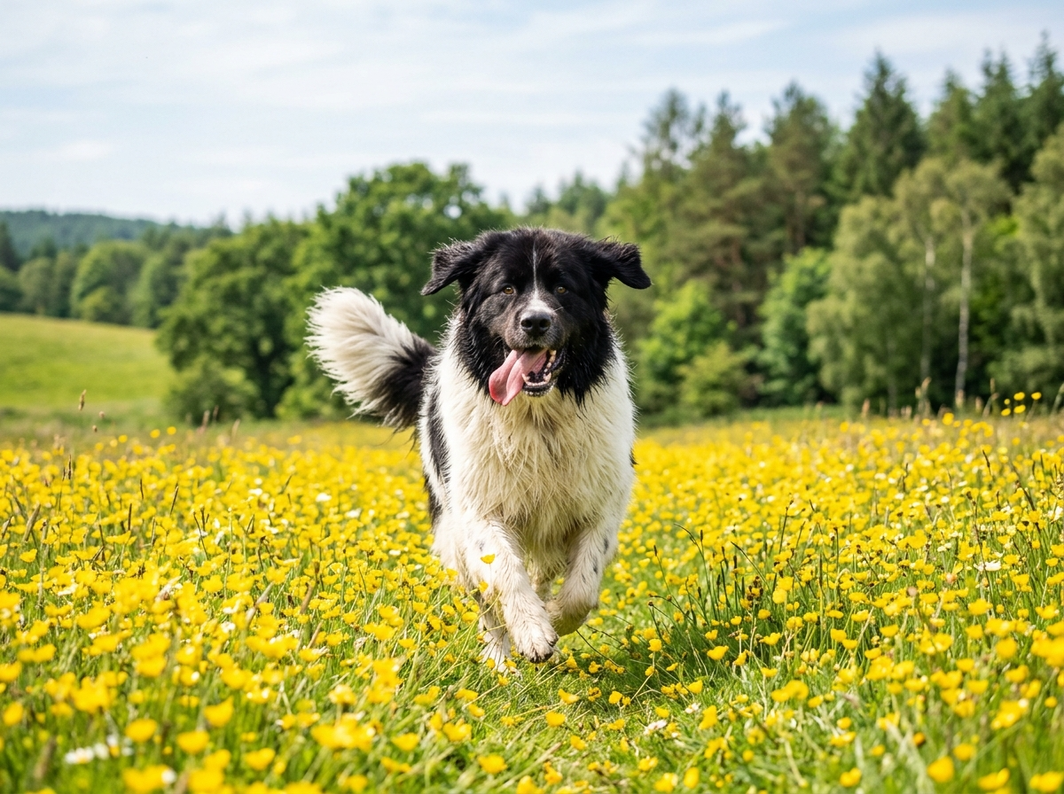 Ландсир относится к крупным собакам-компаньонам.