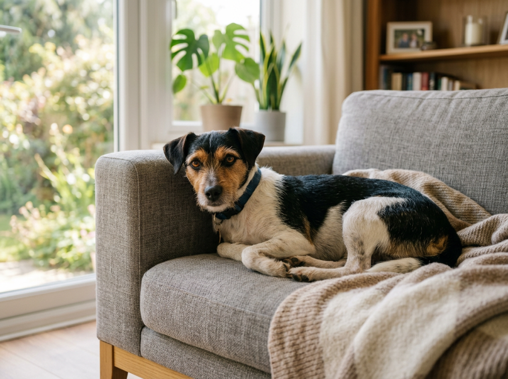 Собака выглядит энергичной и подтянутой.