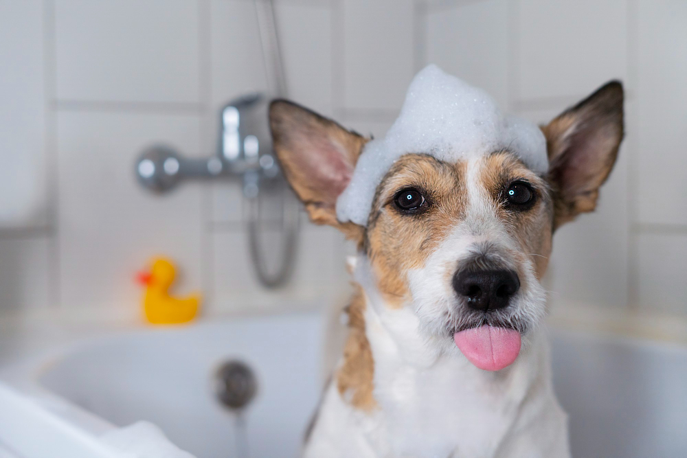 Купайте собаку не чаще 1 раза в месяц, чтобы не нарушить жировой баланс кожи.