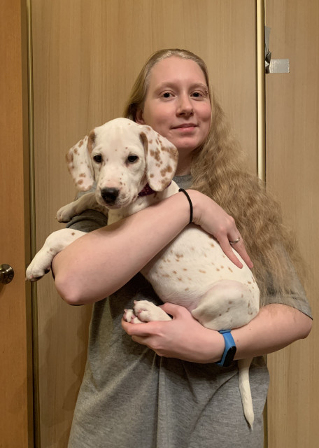 Дата рождения собаки 13.07.18. Корм ест сухой Royal Canin дважды в день или в процессе прогулки.