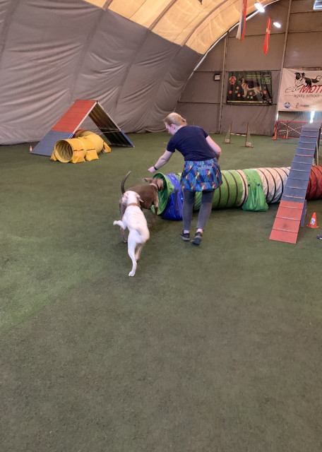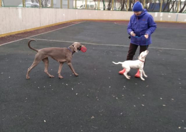 Активная, выгул 2-3 раза. Кормление 2 раза, суой корм. Иногда конфликтует с суками в одном помещении, на улице играет. Гуляет в наморднике для безопасности от отравления.