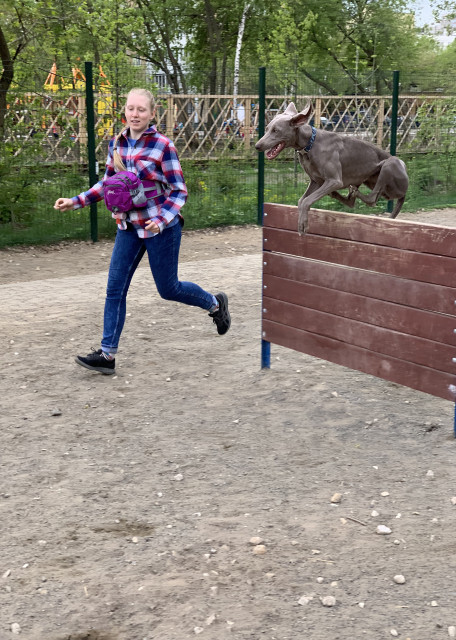 Спокойно относится к чужим людям и любым животным, на площадке изредка может побегать с собакой, но обычно предпочитает игру с пуллером/мячом или бег с препятствиями.