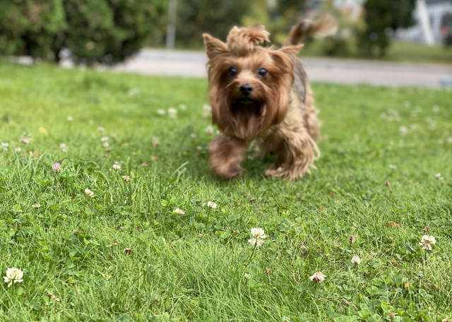 У меня Йоркширский терьер, мальчик, 12 лет. Собака стерилизована, привита. Спокойная и дружелюбная, любит гулять. Постоянно гуляем в парке, у реки.