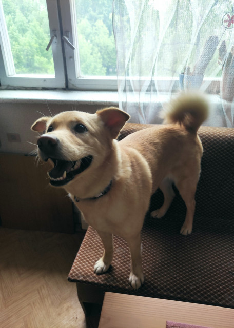 Эмма очень добрая и домашняя собака. Мы не воспитывали ее охранником или защитником, поэтому она любит всех животных и людей. Она любит смотреть в окно и иногда лает на людей в оранжевой одежде. Обожает грызть бараньи ноги и прочие гадкие лакомства и продаст душу за носочек. Собака стерилизована и привита.