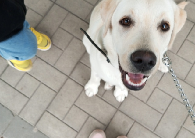 Спокойная беспроблемная собака. Ест и спит)) Переживает, что хозяев рядом нет - привязана очень.