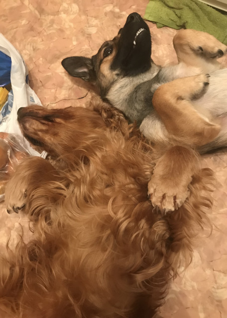 Здравствуйте! В двух словах о нашей семье: мы молодая семья с дочкой 5 лет, живем с родителями, работаем из дома почти все, поэтому большую часть времени у наших подопечных постоянная компания из пары человеков) В квартире достаточно места для побегать, двери в комнаты закрываем только на ночь, собаки в этот момент обычно спят с нами на кровати). Выгуливаем обычно дважды в день, при необходимости можем и три. Рядом с домом Таврический сад, долгие прогулки обычно там, но с поводка не спускаем. Поддаваться ли нам на уговоры и подкармливать ли со стола питомцев - решать вам)