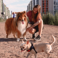 Догситтер берет вашу собаку в свой дом на время пока вы в отъезде, кормит и гуляет с ней, как со своей собакой.