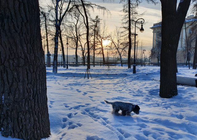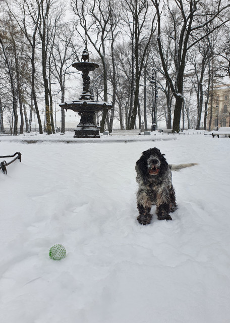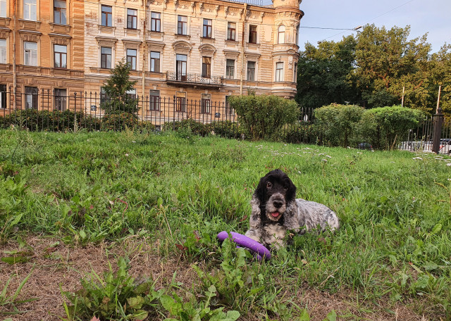 Живу с молодым человеком (который так же любит собак), рядом с домом есть Румянсовский сад и дворик перед Академией Художеств, там много места для прогулок и игр с собаками.
