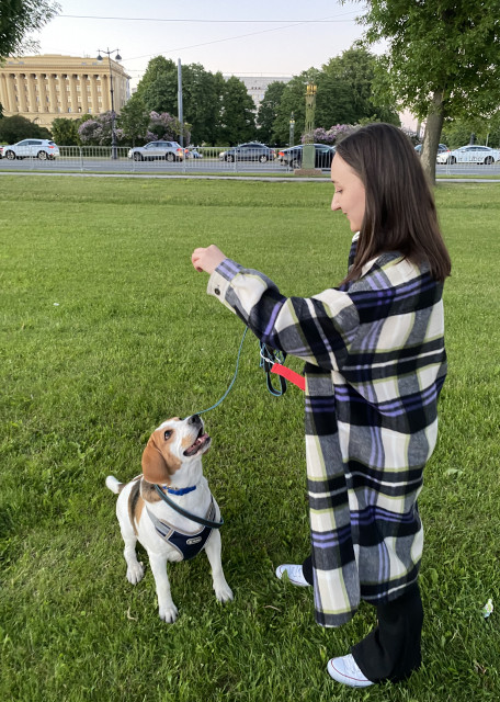 Расскажу немного о себе) Меня зовут Алена, мне 24 года, и я работаю архитектором. Мой опыт общения с собаками более 15 лет (среди них: джек рассел терьер, такса, шпиц, лабрадор), и с каждым получалось находить общий язык - ходить на прогулки, дрессировать, играть на природе и дома.