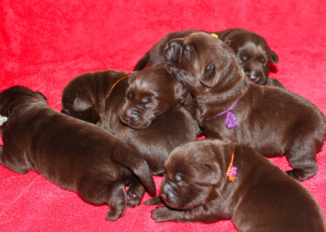 Принимала участие в рождении 6 щенков, воспитала их всех начиная с отрезания пуповины, заканчивая поиском любящих хозяев и сопровождением их по сей день. Двоих малышей мы оставили в нашей семье, так и получились - 3 лабрадора вместе с мамой 😉