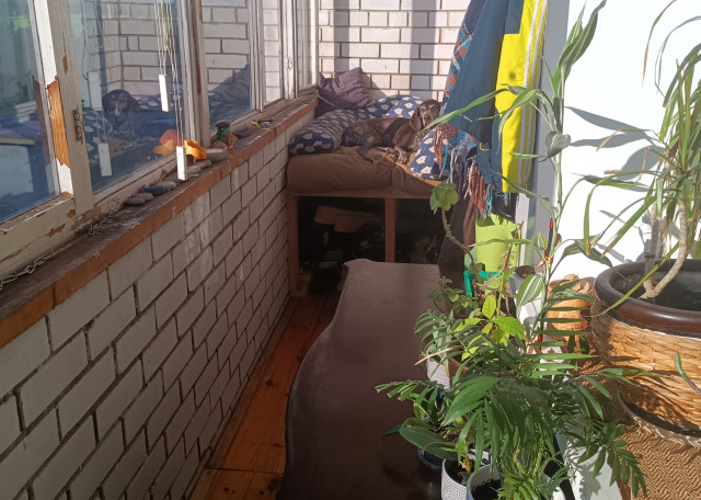 На одном из балконов, большом, оборудован вместительный топчан, на котором очень удобно лежать и смотреть в окошко самым разным зверям.