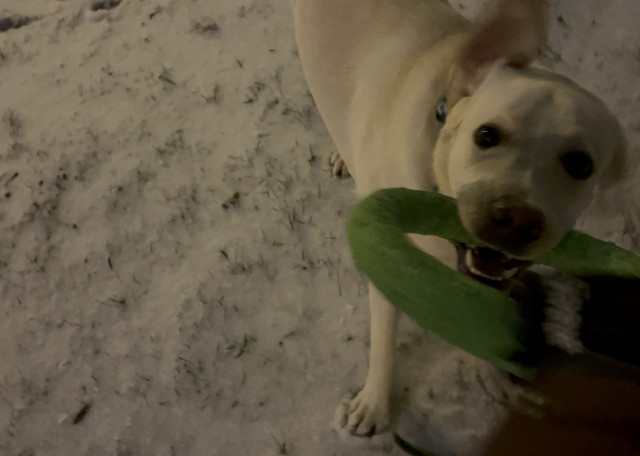 На прогулке он так же не доставляет проблем, прекрасно управляется голосом, любит играть в перетяжки, пуллер, носить мяч. Поводок не тянет, на команду «фу» реагирует отлично, подзыв, не бежит и не тянет к собакам