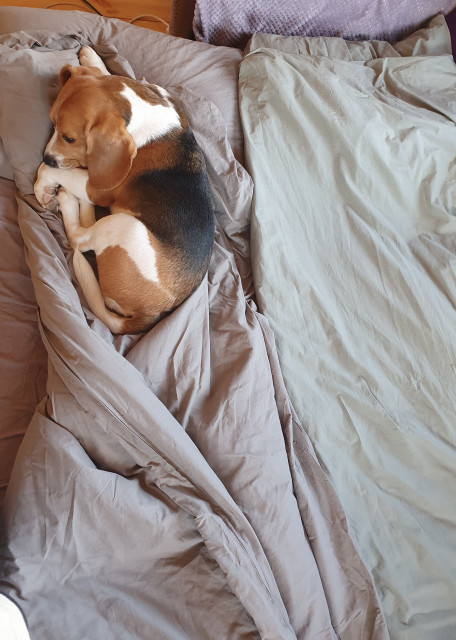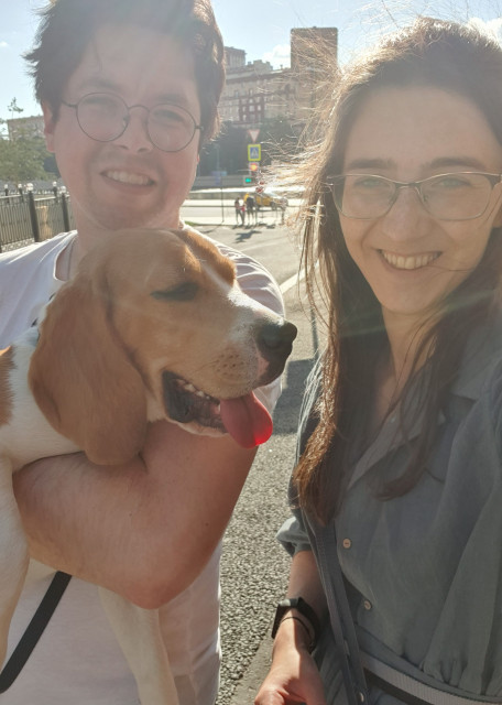 Мы оба работаем из дома, а значит ваш собакен никогда не останется один. У нас есть все для уходу за собакой, будем любить как своего) Спать ваш друг может у себя на лежанке, а может с нами - мы всегда рады пустить собакена к нам на диван. Мы живём в просторной однушке, но гулять можем 3 раза в день (в сумме около 3 - 4 часов).