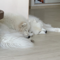 Со мной живет моя любовь, мой пирожочек, моя сладкая булочка- девочка самоед. Имею опыт жизни в разное время с собачками- потеряшками и из приюта. Все собаки пород средних размеров. Была бы у меня возможность, я бы жила с целой стаей.