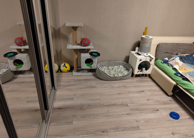 Работаю из дома, так что, животные практически не остаются в одиночестве. Выгуливаю своего пса 3 раза в день. Обычно во дворе, в близлежайших парках, на площадках для выгула бегаем с игрушками, по выходным в парках города.