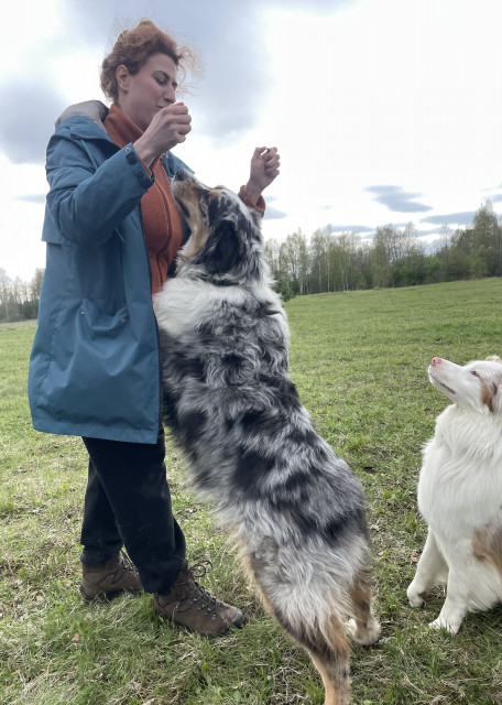 Очень люблю животных, с детства всегда были собаки. Сейчас у меня 2 собаки: аусси Соломон и корги Уно (кобели, кастрированы, 2 и 3года).
