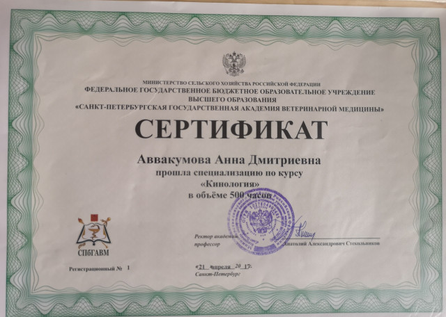 - Сертификат о прохождении курсов кинологической подготовки👩🎓