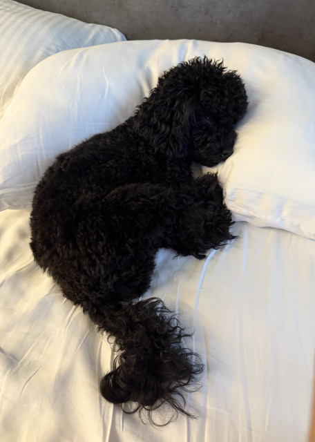 Может спать как на лежанке, так на кровати с человеком.