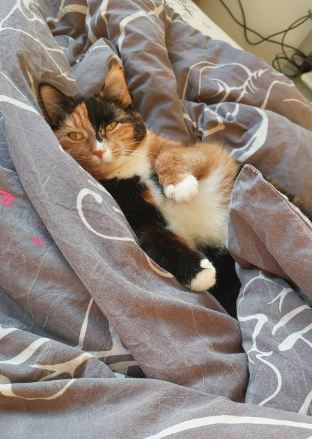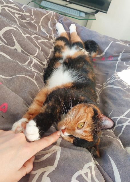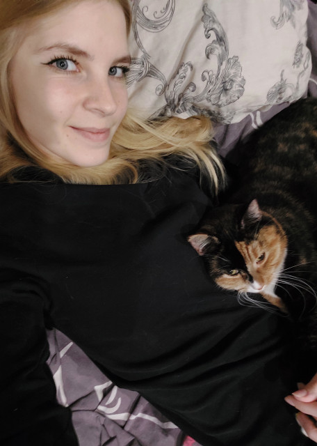 Я живу с мужем и кошечкой (девочка Харви, ей 2 года, она пугливая и не агрессивная, к другим животным относится нейтрально).