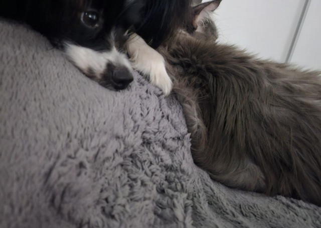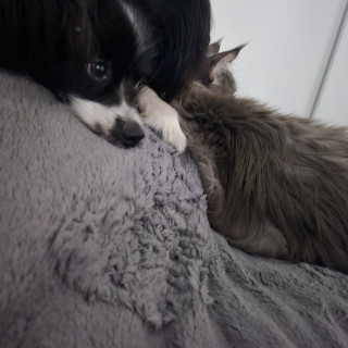 Спокойно остаётся один, очень любит кошек, при ответном желании - стремится к дружбе и быть поближе.