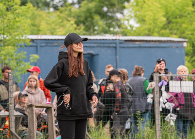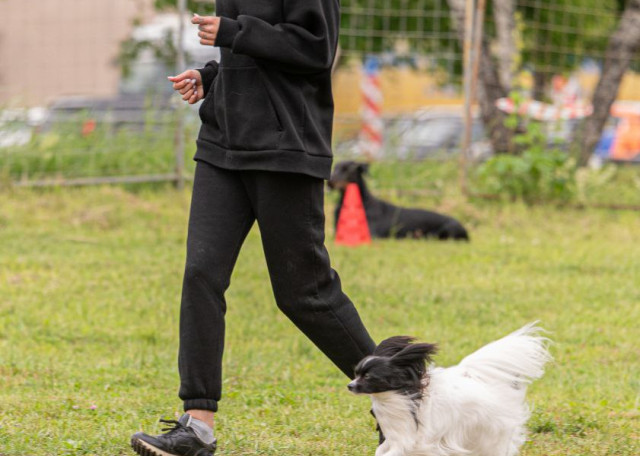 Со своей собакой сдаём нормативы.