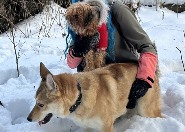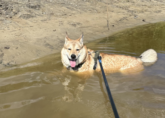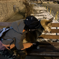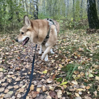 Метис предположительно лайки с сиба-ину. Любит играть. Дружит со всеми собаками не зависимо от их размера (дружелюбными). По характеру лиса, которая умело получает практически все что хочет