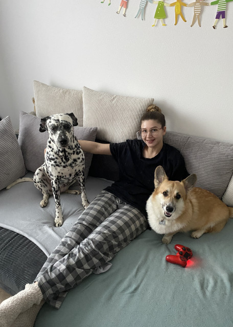 В детстве у меня был лучший друг - пес Палкаша, он жил в деревне у дедушки. Мы всегда с ним бегали по полям, учили команды и играли с мячиком. Также я часто выгуливала питомцев своих знакомых, когда они были в отпуске (в том числе больших собак). А с августа 2025 года активно беру на передержки собак всех пород и размеров 😉