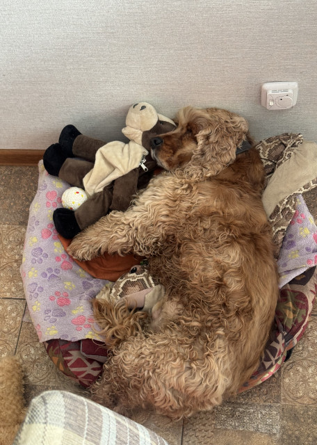 У меня есть дружелюбный кокер-спаниель, так что вашему питомцу никогда не будет скучно – всегда найдётся кто-то, с кем можно поиграть и составить компанию.