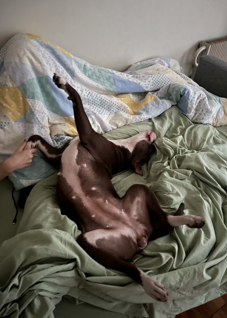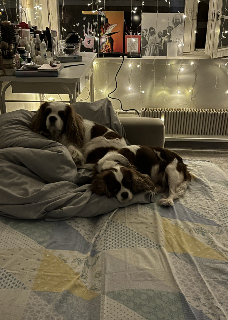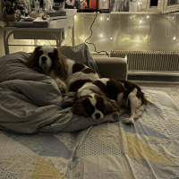 Собаки прекрасно провели время с Ариной, не скучали много играли и гуляли, забрали их довольными и ухоженными) Арина очень хорошо относилась к нашим любимцам и даже позволяла им спать вместе с ней в кровати) что очень в характере наших питомцев) ноябрь 2025
