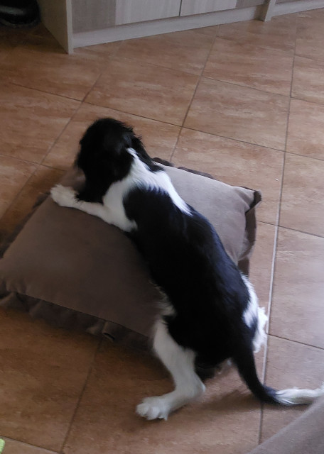 Любит бегать и играться с другими собаками. Дадит с кошками. Дружелюбный игривый малыш