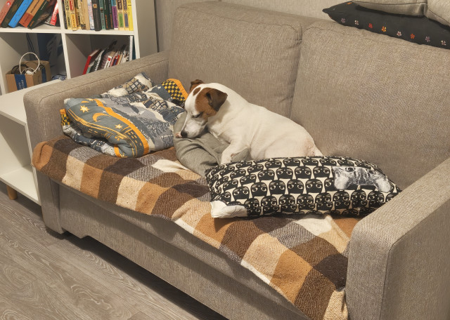 В настоящее время работаю удаленно из дома, так что есть возможность проводить с собакой время 24/7.