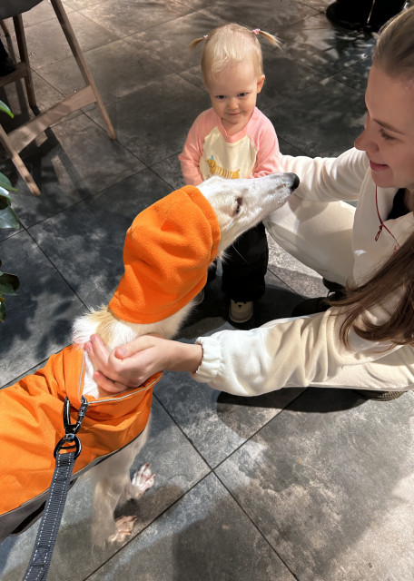 У меня есть собака по кличке Луна — русская псовая борзая. Она нежная, ориентированная на человека и очень контактная. Раньше у неё были проблемы с перевозбуждением, но благодаря работе с кинологом и моему терпению, сейчас Луна стала заметно спокойнее, хорошо чувствует настроение человека и любит размеренные прогулки и внимание. Но и побегать, поиграть тоже обожает:)