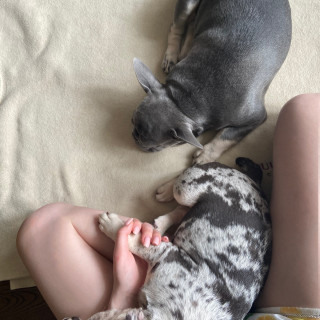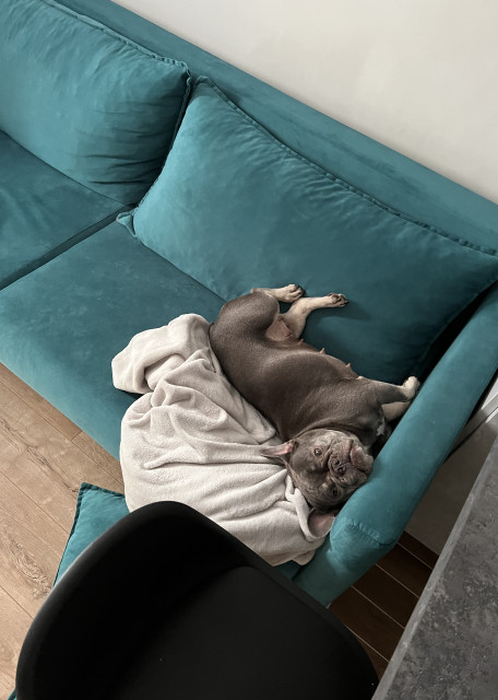 Сейчас я живу в большой уютной квартире вместе с любимым мужем, дочкой и со своей французской бульдожкой, ей 6 лет. Она спокойная, воспитанная, социализированная, была мамой, никогда не конфликтовала с другими собаками. Хорошо ладит как с маленькими, так и с крупными собаками, любит играть и спокойно реагирует на новых питомцев.
