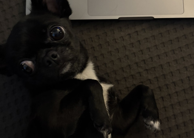 Работаю я удаленно, именно поэтому собака всегда может быть под моим присмотром.