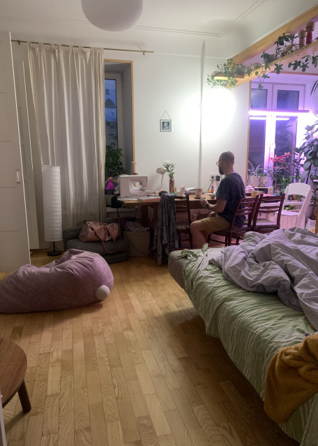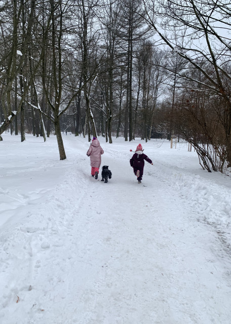 Так же регулярно водим на прогулки дворнягу Ясю, когда хозяева уезжают. Яся не любит других собак и привязана к собственной квартире, поэтому забираем ее на прогулки и кормления, а гуляем в непопулярных для собачников местах.