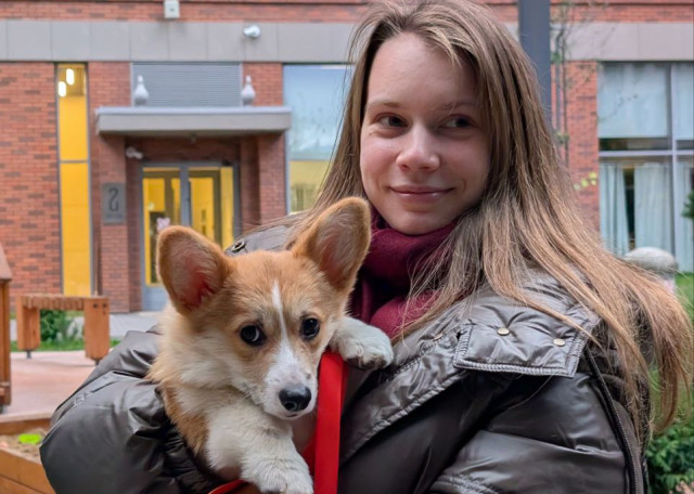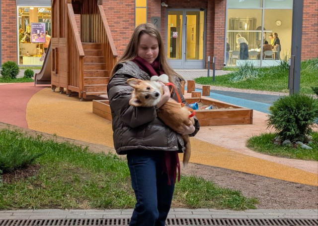 Меня зовут Саша, я работаю на удаленке и очень люблю собак, и всю свою жизнь с ними живу. Сейчас у меня дома живет 9-месячный щенок корги.