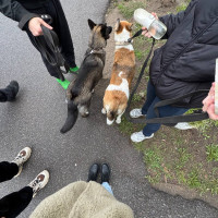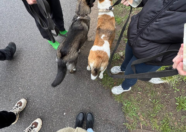 В наличии опыт прогулки одновременно с двумя активными девчонками на поводках и умение найти общий язык с хвостиками.