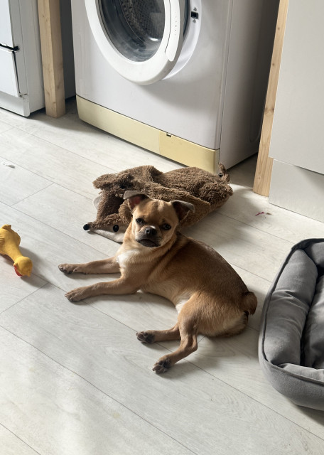 Веселый, энергичный у меня мой любимый мальчик, социален, любит интенсивные с пробежкой обязательно прогулки. Предпочтительны у него мягкие игрушки или сушенное яблочко его любимое лакомство. Все его находки можно найти в лежанке или укромном месте под кроватью, выходим на улицу 3 раза в день, ибо в нем энергии столько что даже после долгой прогулки, мы еще дома будем играть в мяч