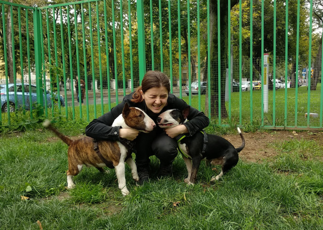 Собак очень люблю, всю жизнь бок о бок с ними: с двух лет росла с восточноевропейской овчаркой, в юности была кавказская овчарка, а сейчас у меня живёт минибуль (2 года, 18кг), кобель, дружелюбный ко всем девочкам, щенкам и кастрированным мальчикам (к кобелям не проявляет агрессии, но может ответить, серьезных драк никогда не было), активный. С радостью ждём вас в гости!)