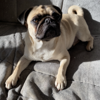 Сейчас у нас замечательный котик и самый добрый мопс.