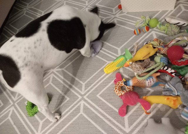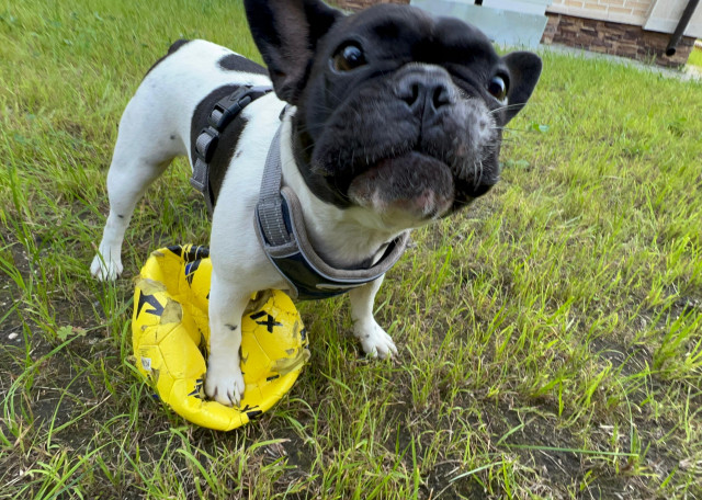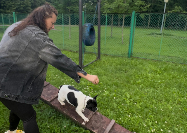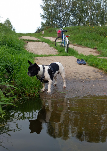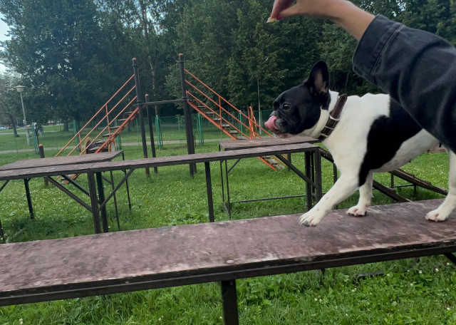Добродушная французская булочка) Совершенно без агрессии к животным: живёт по принципу - что-то отобрали, ну ничего, надо делиться) а я пойду травы поем)