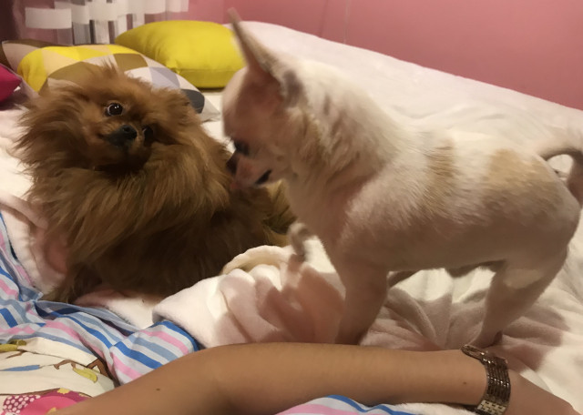 Эмили , весит 4,3 кг маленькая пугливая собачка , абсолютно не агрессивная ,не приставучая к другим животным