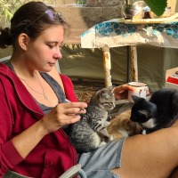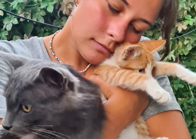 Учусь на последнем курсе кафедры искусствоведения, люблю путешествовать, раскопки и море. Все лето провожу с собаками, потому что они в каждом доме на юге России. Раньше была своя замечательная собака Земфира, долгое время жила с белой швейцарской овчаркой Белкой, а также выгуливала собак соседей и нянчилась с ними